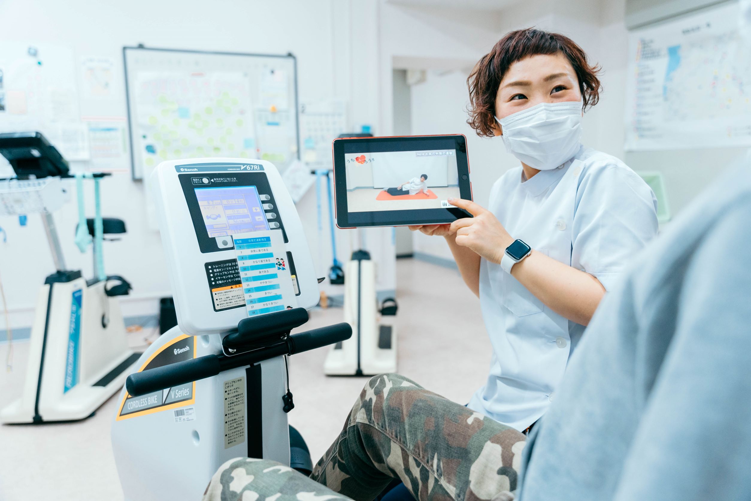 患者さんの中には「どの程度活動しても大丈夫なのか?」や「どういうことをやったらいいのか?」が分からず不安を抱く方も多くいます。心臓リハビリで適切な運動療法を行うことで、身体の状況を客観的に知り、実際の運動負荷を体験することで不安を軽減することができます。